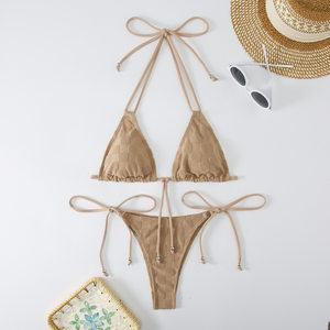 XUANHUI specializes in Western sexy bikinis. There are many kinds of sexy elements like cut-outs, hollow-outs, and ties with rare textured and coated fabrics. All model photos are original.