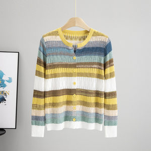 Cardigans wholesale cover the arms and torso and buttons allow for an open or closed front. We have a huge collection of styles of features, fabric content, size and cut. FondMart ladies' cardigans wholesale is also available in diverse colors with details such as belts, oversized dimensions and cuts. So you can choose the types that meet your target customers's demands.